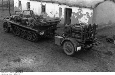 Sdkfz 10 / 1 буксирующий 28/32 см Nebelwerfer 41 ракетную установку в России, 1942.