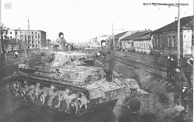 Войска Красной Армии происходит в боевых действиях на задней танк PzKpfw IV. Видно, знаки отличия 18-я танковая вермахта дивизий и полков знаки 18-я танковая полка, написанные на башню PzKpfw IV. Советский Западного фронта, сентябрь 1941 года.
